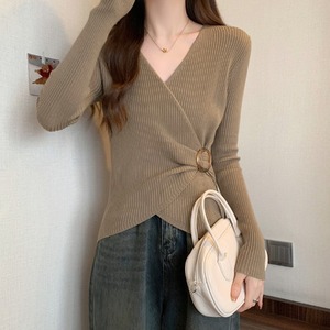 大码女装2025不规则v领内搭打底衫早秋胖mm收腰遮肚显瘦针织上衣