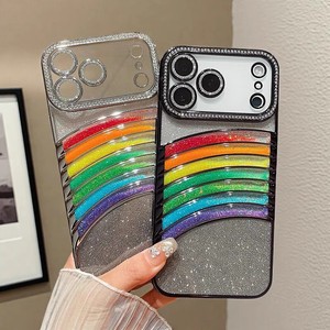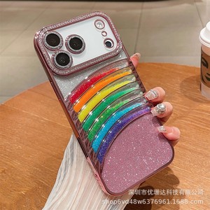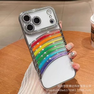 适用iPhone17promax立体流沙彩虹手机壳苹果16闪钻电镀全包保护套