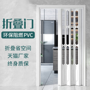 PVC折叠门开放式厨房推拉门免打孔隐形家用阳台客厅卫生间简易门