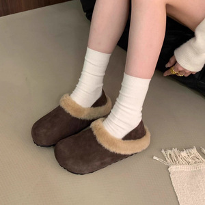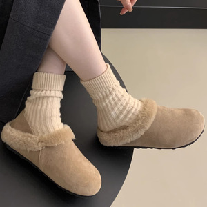 勃肯鞋女2025新款秋冬加绒加厚毛毛鞋子保暖豆豆棉鞋一脚蹬雪地靴