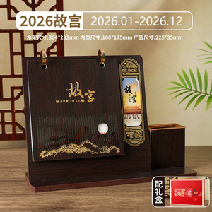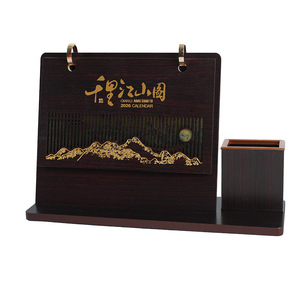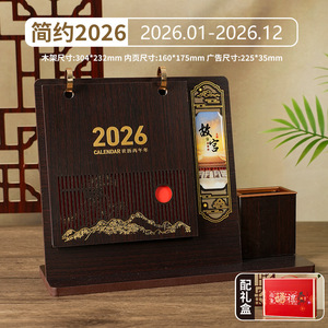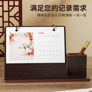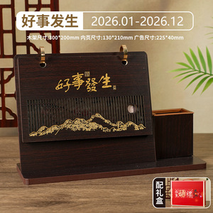 2026年新款创意木质镂空台历马年多功能笔筒日历礼盒装可台历