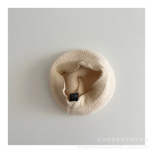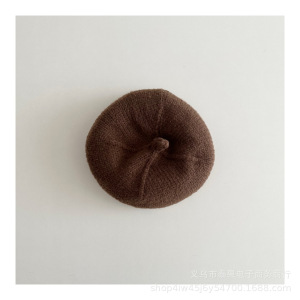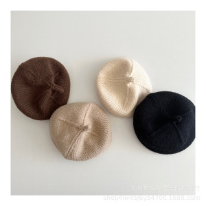 日韩新款儿童纯色针织奶嘴贝雷帽秋冬季男女童复古文艺凹造画家帽