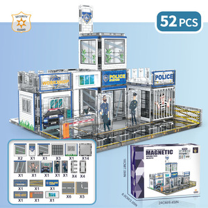 彩窗磁力片源头厂家跨境磁力积木磁铁道路磁力片城市交通建筑警察