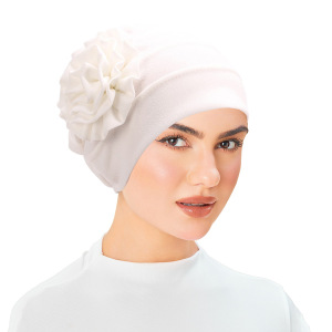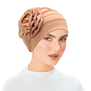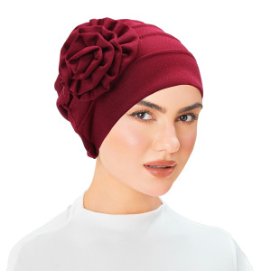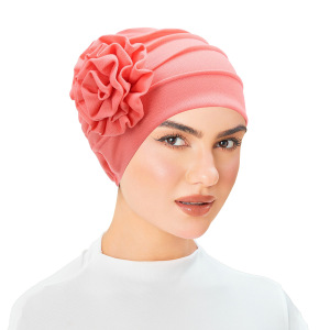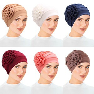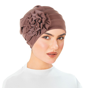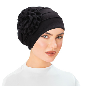 亚马逊 新款侧面贴花 纯色大花朵头巾帽 月子帽 穆斯林包头帽现货