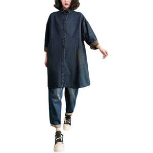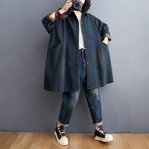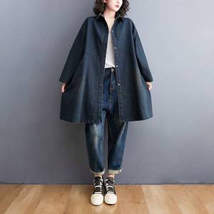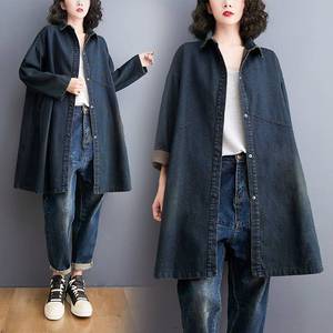 秋冬新款宽松大码复古做旧中长款牛仔外套女时尚洋气显瘦