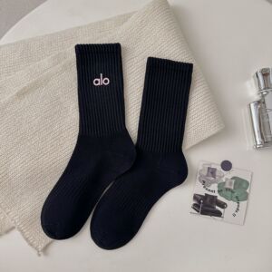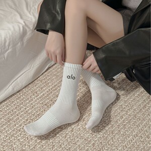 白色袜子女秋冬中筒袜纯棉烫印字母高筒潮袜纯色简约百搭运动长袜