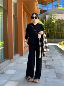 休闲毛衣套装女2025秋冬季外贸新款时尚洋气减龄阔针织腿裤两件套