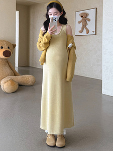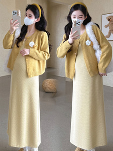 孕妇套装洋气时髦时尚2025秋冬韩系气质圆领毛衣背心裙慵懒两件套
