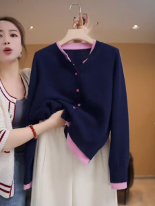 韩系高级感撞色假两件针织衫女秋季新款时尚宽松显瘦开衫外套