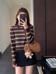 元气减龄 老钱感条纹衫翻领显瘦针织毛衣女25秋冬新款K3325L