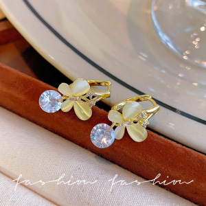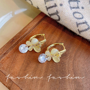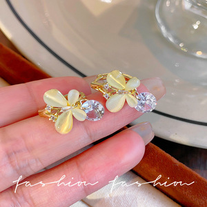 微镶锆石猫眼石蝴蝶耳扣耳环女小众设计感轻奢高级感耳钉百搭耳饰