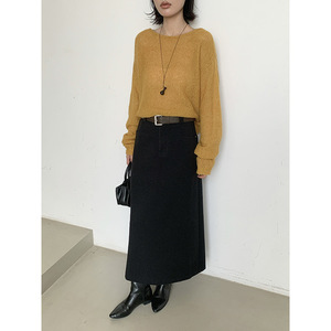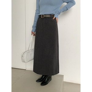 MMC羊毛半身裙女秋季新款显瘦高级感气质长款直筒西装裙a字包臀裙