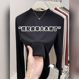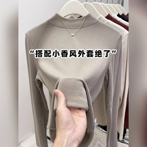 半高领打底衫女秋冬新款洋气修身磨毛长袖T恤显瘦小香风内搭上衣