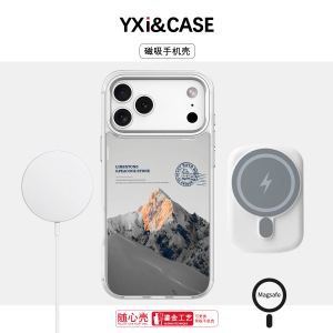 适用苹果17手机壳高级感16可换背板15promax磁吸手机保护套雪山