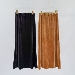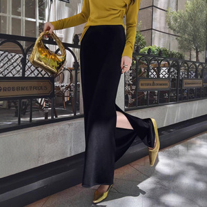 简约百搭龟裂纹丝绒半身裙女秋气质优雅高腰显瘦侧开衩一步裙半裙