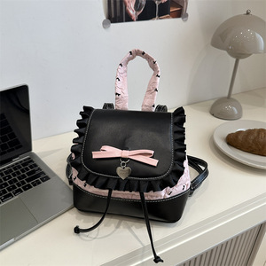 韩版百搭少女风手提小包包2025新款蕾丝花边高颜值休闲双肩背包