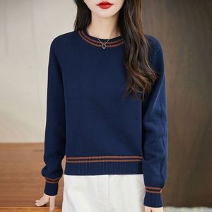 高级感拼色简约圆领针织衫女宽松显瘦百搭毛衣打底上衣内搭打底衫