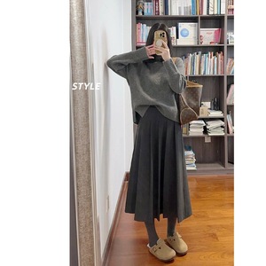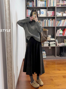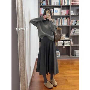 灰色百褶半身裙女2025秋冬小个子气质高腰垂感中长款A字打底裙子