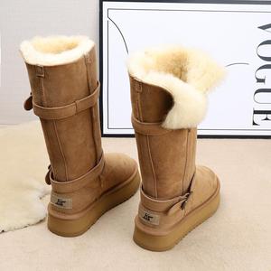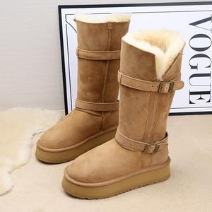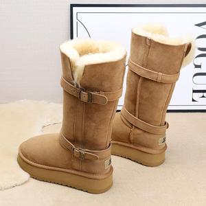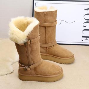 羊皮毛一体雪地靴女厚底2025冬季新款加绒加厚皮带扣超长筒靴