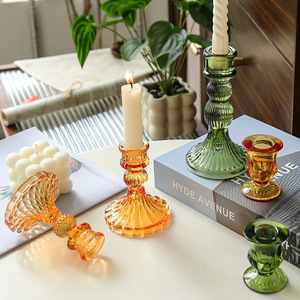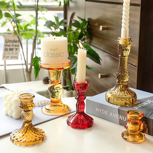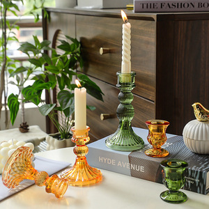 北欧风创意彩色透明玻璃烛台摆件浪漫婚礼宴会餐桌装饰品拍照道具