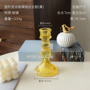 小葫芦杆蜡玻璃烛台-黄色