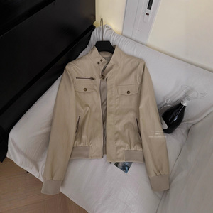2025实拍秋季新款皮衣女秋季美式复古短款米色立领夹克外套