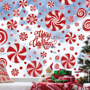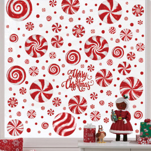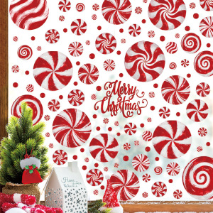 亚马逊圣诞节红色糖果球PVC静电贴圣诞派对氛围装饰玻璃橱窗贴纸