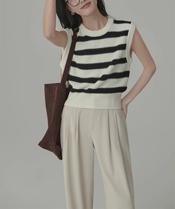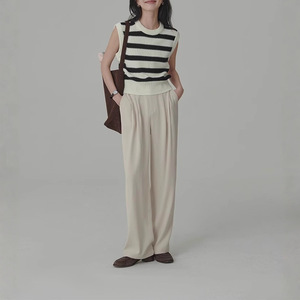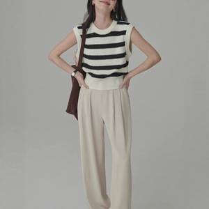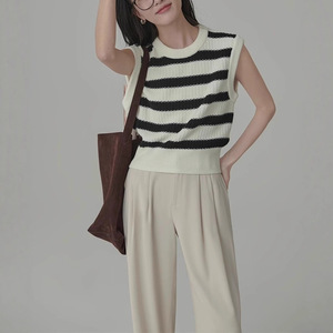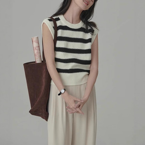 HAVERICE饭馆 奥利奥系列早春黑白条纹短款高腰圆领针织背心马甲