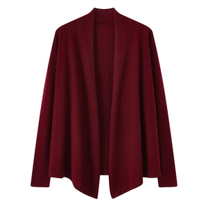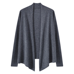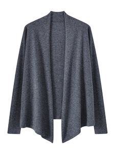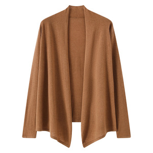 2025秋新款气质无扣中长款针织开衫纯色简约长袖披肩外套空调衫女