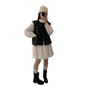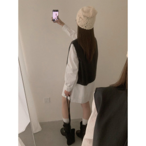 早秋独特超好看套装韩版时尚高级感百搭马甲外套衬衫连衣裙两件套