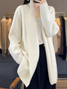 2025秋季新款中长款针织开衫女大翻领针织外套气质百搭时尚大码女