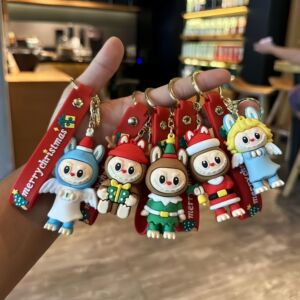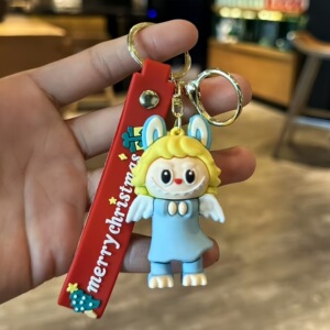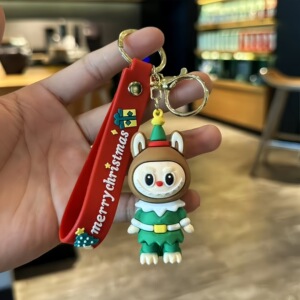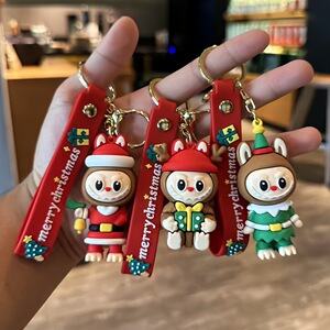拉布布钥匙扣挂件圣诞节拉布布盲盒公仔卡通软胶labubu汽车钥匙链