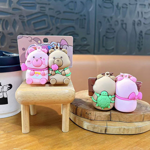 创意情侣卡皮巴拉对扣钥匙扣可爱书包挂件汽车钥匙链情侣礼品批发