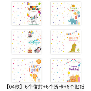 生日贺卡-动物竖版04款(6个卡片+6个信封+6个贴纸)