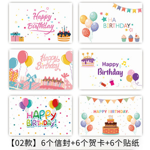 生日贺卡-蛋糕款01款(6个卡片+6个信封+6个贴纸)
