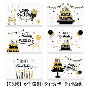生日贺卡-黑金横版05款(6个卡片+6个信封+6个贴纸)