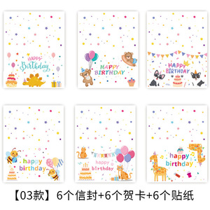 生日贺卡-动物横版03款(6个卡片+6个信封+6个贴纸)