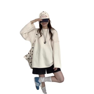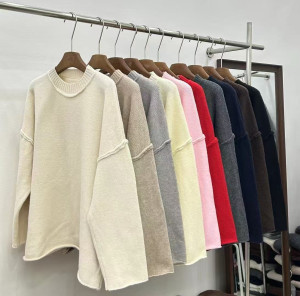 俄罗斯跨境新款纯色宽松大码圆领反套设计感套头毛衣女厚实套头衫
