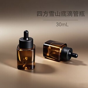 新款30ml雪山底方形玻璃滴管瓶 厚底精油瓶精华原液瓶分装瓶