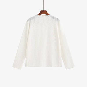 大码女装镂空半高领上衣女雪纺打底衫2025秋胖mm修身蕾丝衫NS1351