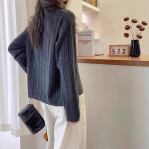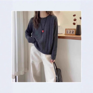 韩版温柔百搭宽松100羊毛衫提花女秋冬新款羊绒修身显瘦长袖上衣