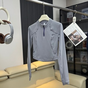 户外山系辣妹风半拉链立领健身瑜伽服长袖T恤修身上衣 9259