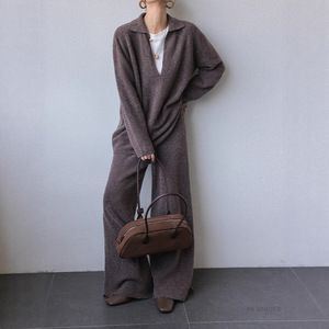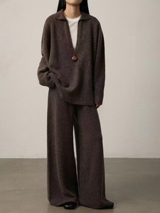 大码慵懒风松弛感V领秋冬新款宽松休闲针织衫两件套阔腿裤套装女