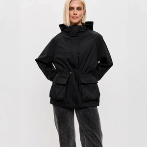 欧美跨境休闲时尚女士冲锋衣长袖连帽抽绳防水外套宽松户外登山服