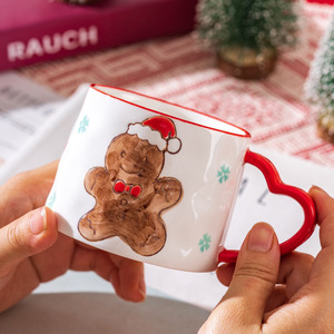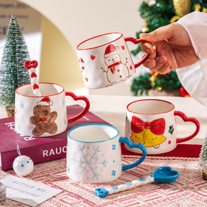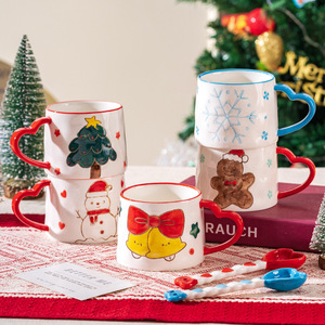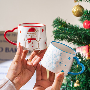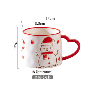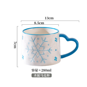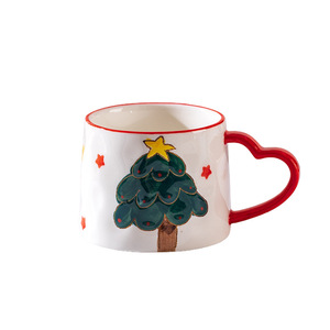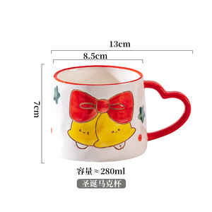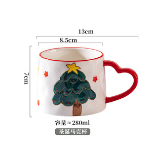 新款圣诞可爱少女心陶瓷杯雪花圣诞树马克杯爱心创意手绘咖啡杯子