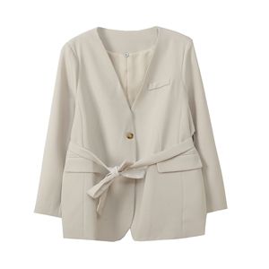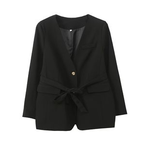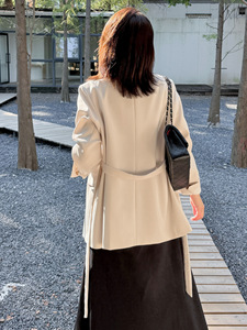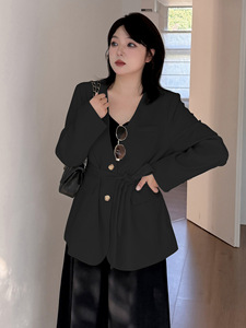 伊诺大码女装气质通勤V领西服外套2025秋飘带设计感上衣323200