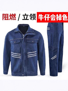牛仔工作服套装反光条男工装劳保服加厚耐磨耐高温套装