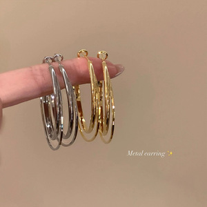 金属双层圈圈耳环女轻奢高级感气质大耳圈耳钉时尚个性素圈耳饰品