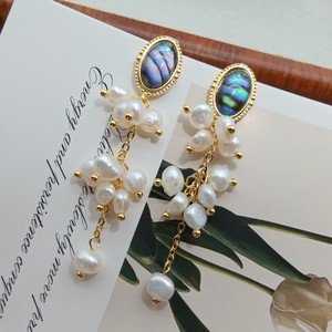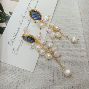 新款复古奢华小众设计感鲍鱼贝耳饰 淡水珍珠耳钉 纯手工编织耳环