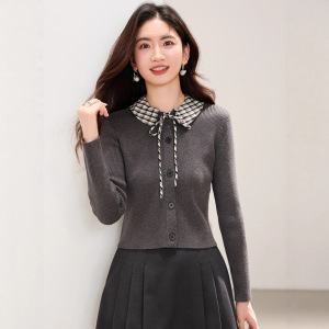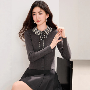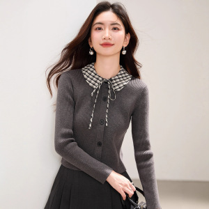 2025秋冬新款时髦撞色衬衫领针织开衫女气质小香风修身内搭打底衫